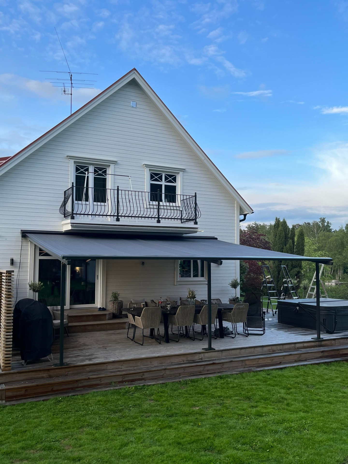 Vindskydd eller insynsskydd till uteplatsen.